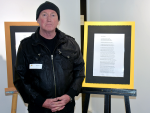 “Stage Whispers is a poem that has germinated over the past 40 years,†Mr Collins said. “Many poems just occur. This one hung in the back of my mind taunting me for decades.â€Â