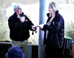 Vince Little Publicity Officer Highfields Pioneer Village presents Alison Kennedy CEO Toowoomba Hospital Foundation with a cheque for $3,693.79