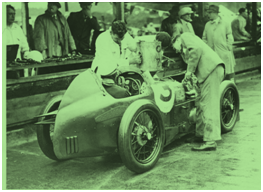 The above photoshows the car being raced at Brooklands, this picture shows the car refuelling at the International 500 mile race, held on the 22nd September 1934.