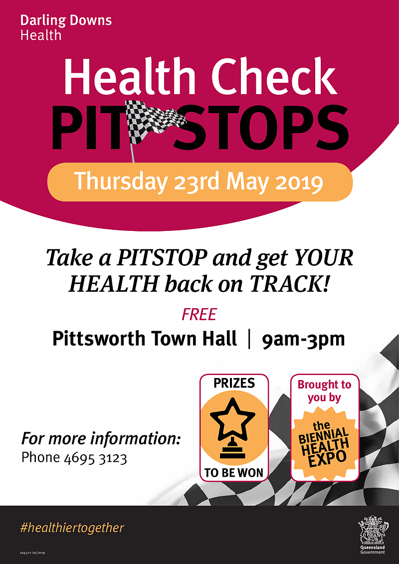 Darling Downs Health is proud to present Pittsworth’s Biennial Health Expo, to be held from 9am to 3pm,on Thursday 23rd May at the Pittsworth Town Hall.