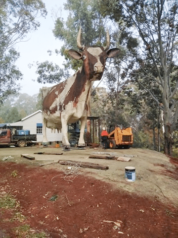 On the 10th of January 2020, the Big Cow was moooved to Highfields thanks to startup funding from Clive Berghofer and the generous assistance of Universal Cranes, George’s Loader Hire, Chetty’s Excavations, Doug’s Shade Sheds and Sugden Cranes.