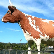 The Big Cow was built in the 1970s to attract tourists to a working dairy farm on the Sunshine Coast. It is one of the many Australian Big Things and was sculpted by Hugh Anderson, who also sculpted the Big Bulls in Rockhampton.