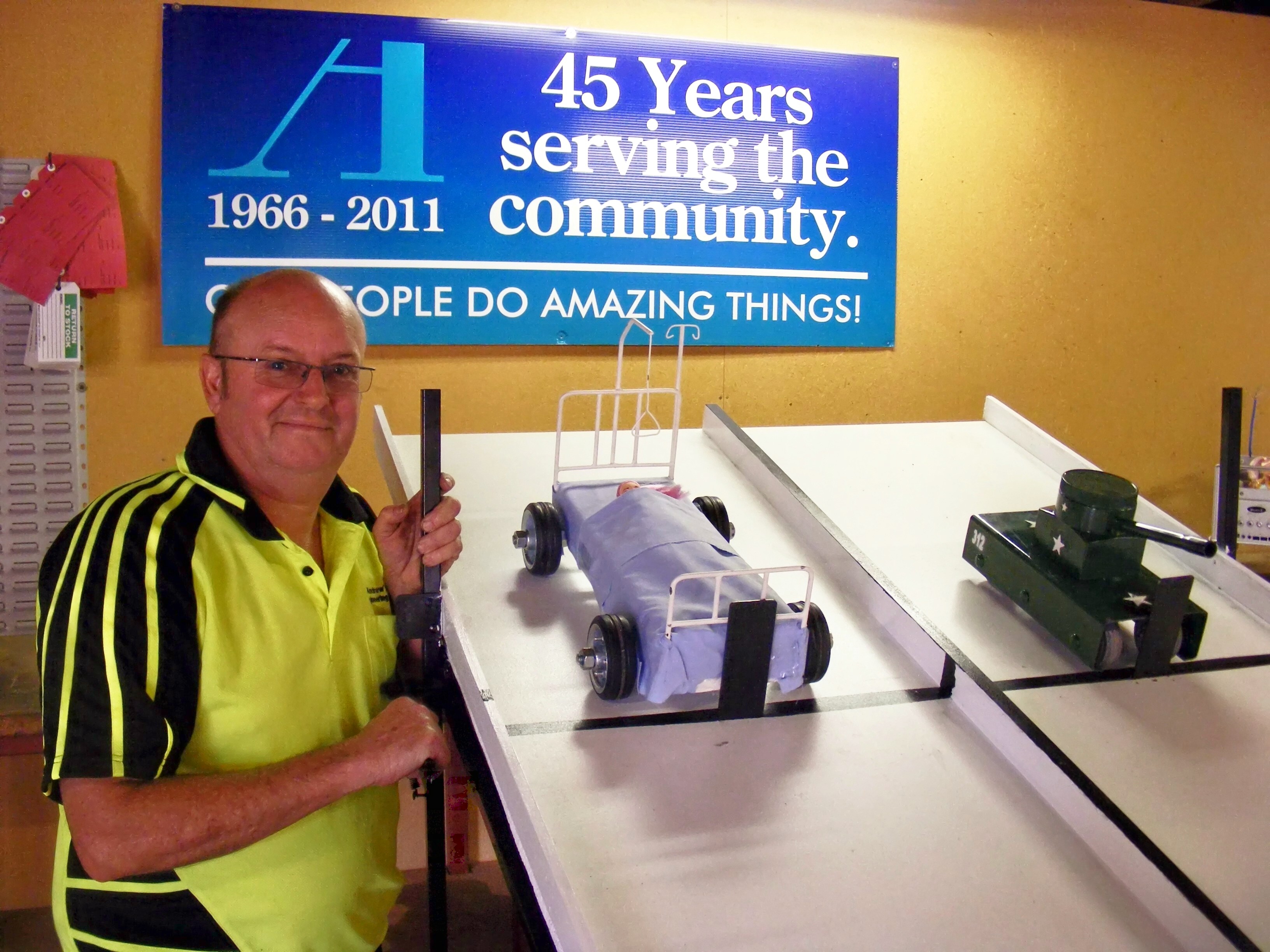 This year there will also be Tappet Cover and Box Car racing. The Tappet Cover Cars are made from rocker covers of an actual motor. Box Cars are of any design. The vehicles are raced down a 10 metre track and both types of cars are powered by gravity.
