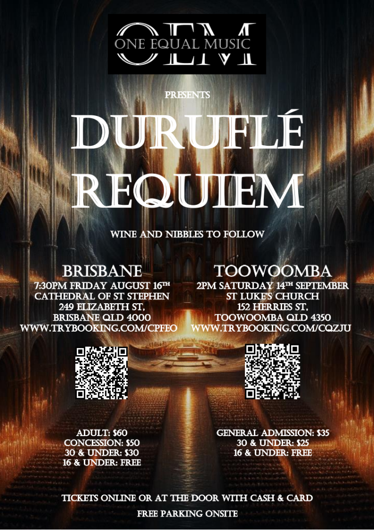 On Saturday, 14th September at 2pm, One Equal Music performed Maurice Durufle’s timeless Requiem, an iconic piece of choral music with its beauty and solemnity to be enjoyed in the grandeur of St Luke’s.