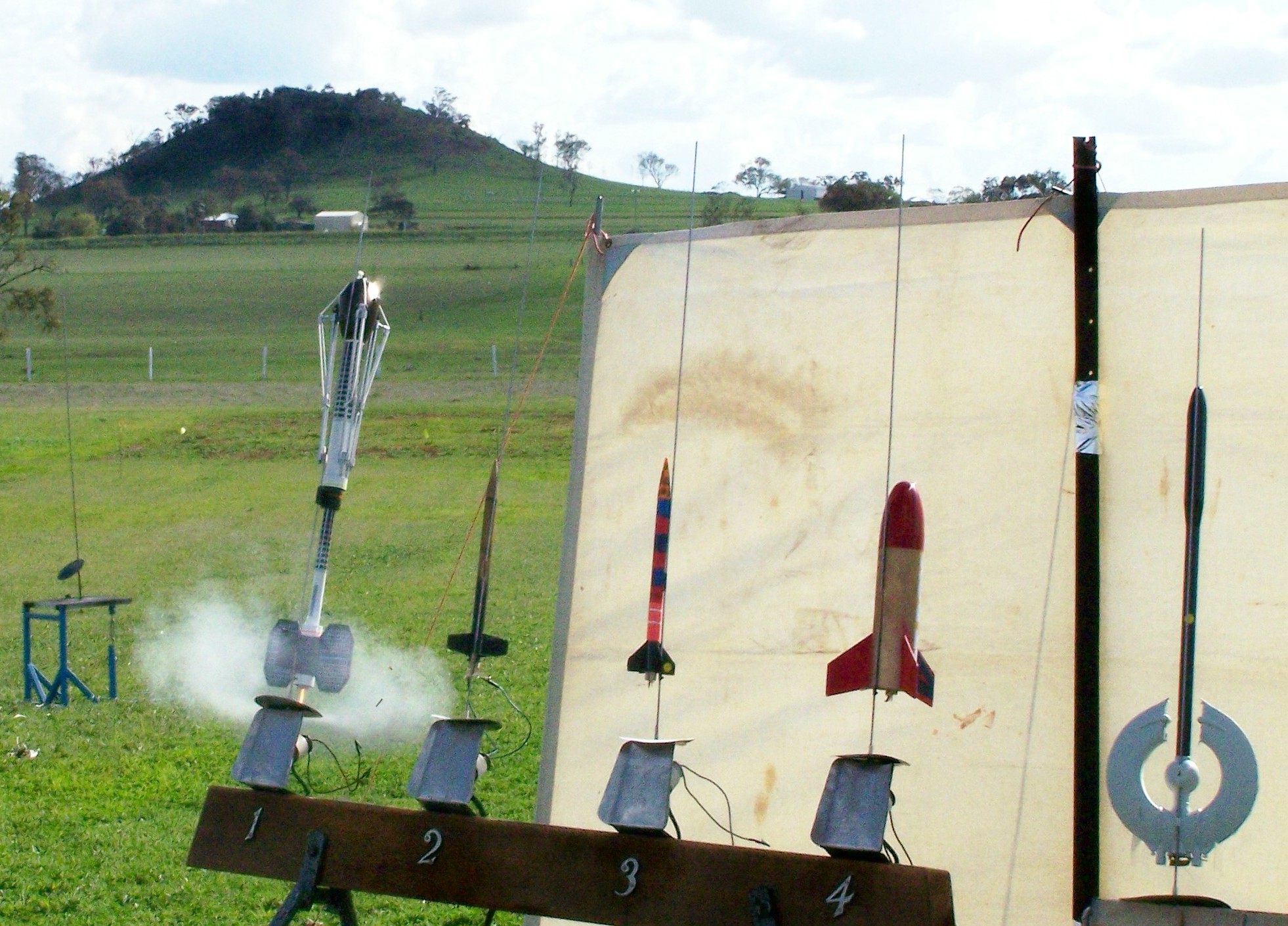 Most of the rockets have been lovingly made by members of the Rangeville Space Pilots’ Club – some are two-stage rockets, others may have gliders attached.