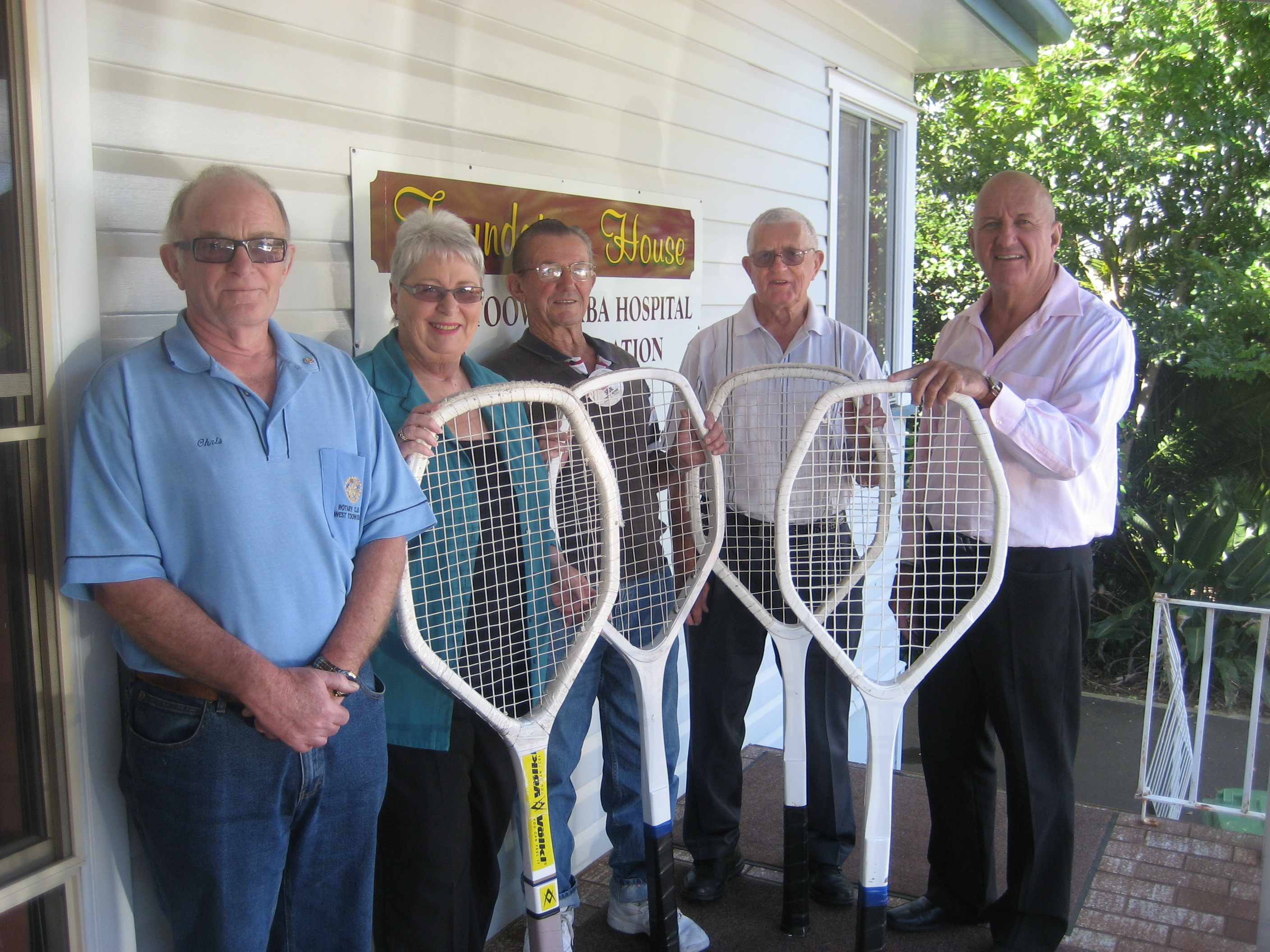With the end of an era coming about in local Rotary following the Toowoomba West Rotary Club handing in their Charter and ceasing existence after 50 years of service to the community, the Toowoomba Hospital Foundation has gratefully accepted the donation of 24 Jumbo Tennis racquets to use for fundraising for children at the hospital.
