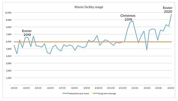 In the week leading up to Easter 2020, Council WMF saw 9,754 visits, and this compares to 5,286 in the same period in 2019. The pre-Easter figures are 1,441 higher than last year’s peak of 8,313 visits during the week between Christmas and New Year’s Eve 2019.