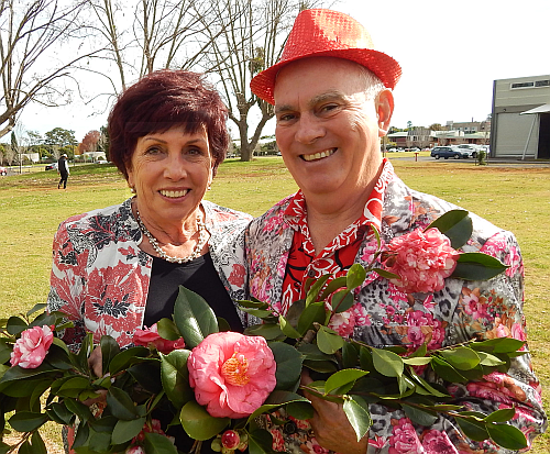 Making a very floral couple – Cr Carol Taylor and Greg Johnson (Camellia Show Media)