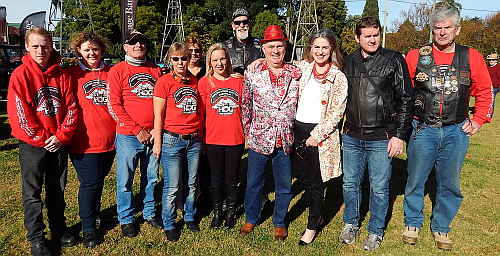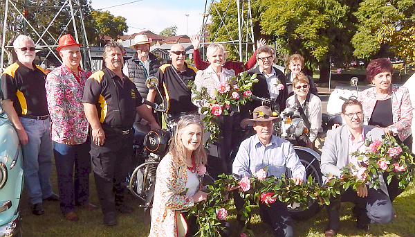 Greg Johnson and Cr Megan O’Hara-Sullivan with members of the Darling Downs Harley Owners Group (HOGS) who will be supporting the Camellia Show by having their motorcycles on display