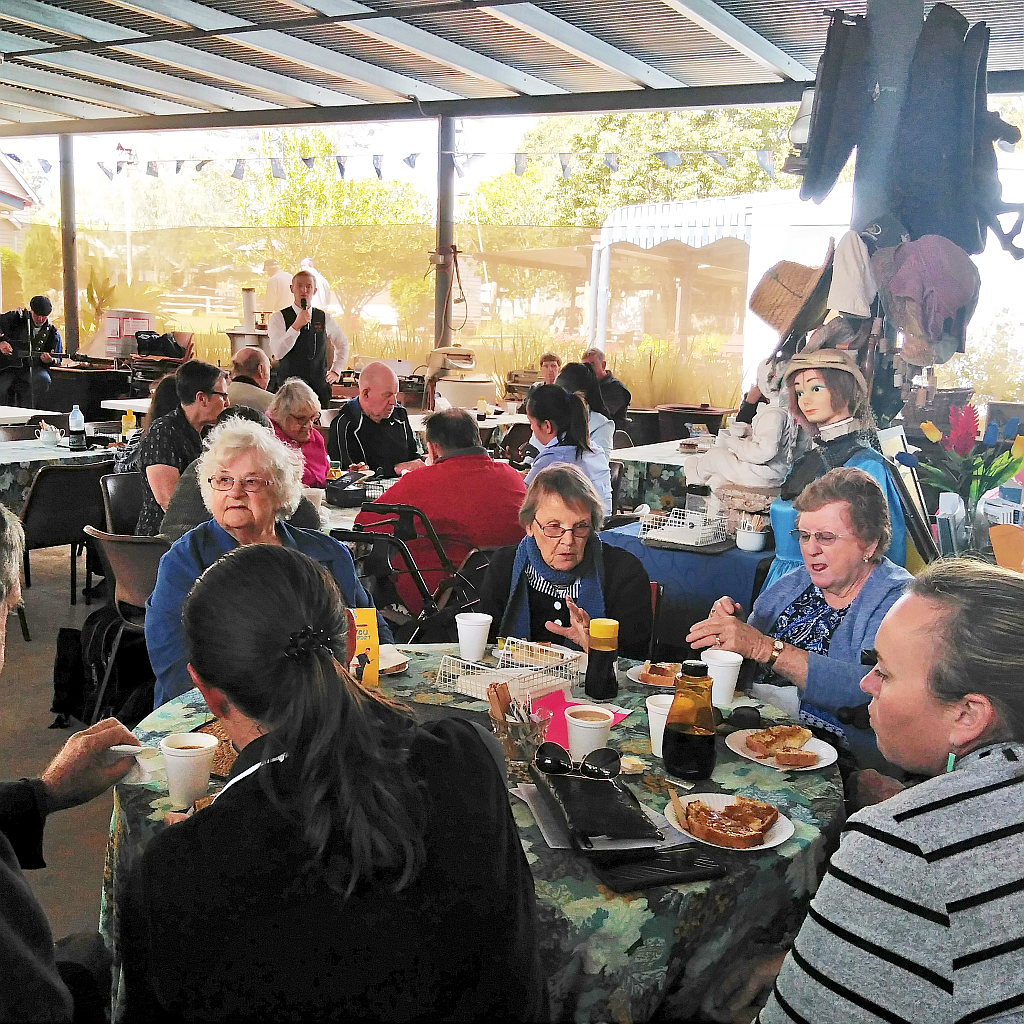 is an Australia’s Biggest Morning Tea event raising $352.40 for the Cancer Council on Thursday May 16th 2019 at Highfields Pioneer Village. Besides locals from Highfields and Toowoomba attending, there were 15 residents and carers who came in from Dalby Blue Care, and Bob Lackey a visitor from Cairns.