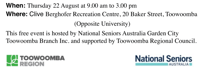 The Seniors Expo will be the place to be between 9.00am and 3.00pm on Thursday 22nd of August. The official opening will be by Councillor Geoff MacDonald at 9.30am.