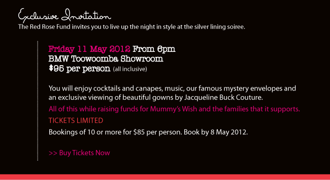 All proceeds from the event will go to Mummys Wish, helping mums diagnosed with cancer. Further information enquiries@redrose.org.au or call 0427 626 846