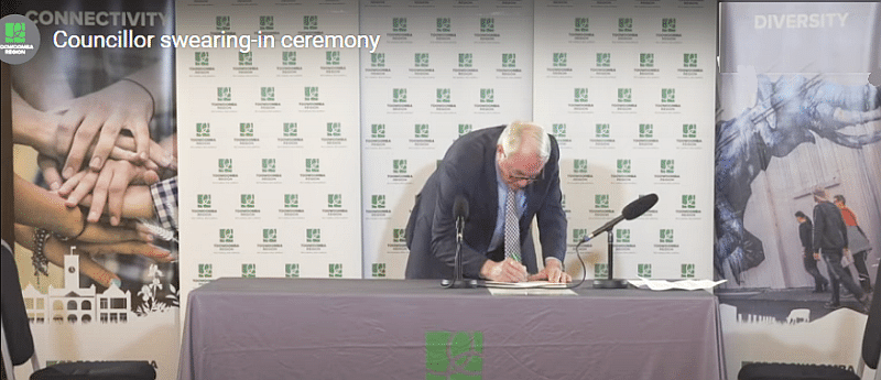 The swearing-in ceremony marks the beginning of the Council term with the newly elected Mayor and Councillors making the declaration of office. The declaration allows a Councillor to act in the office and must be made within one month of election or appointment.