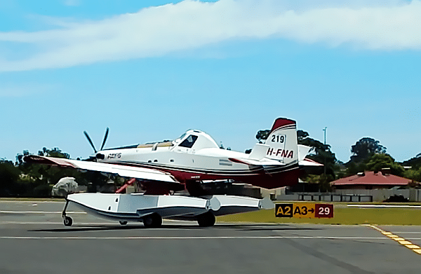 This Amphibious Air Tractor 802A Fire Boss aircraft dropped in to refuel. Presumably VH-FNA was en-route to Fraser Island to add to the aerial fire-fighting capacity battling the blaze on the island.