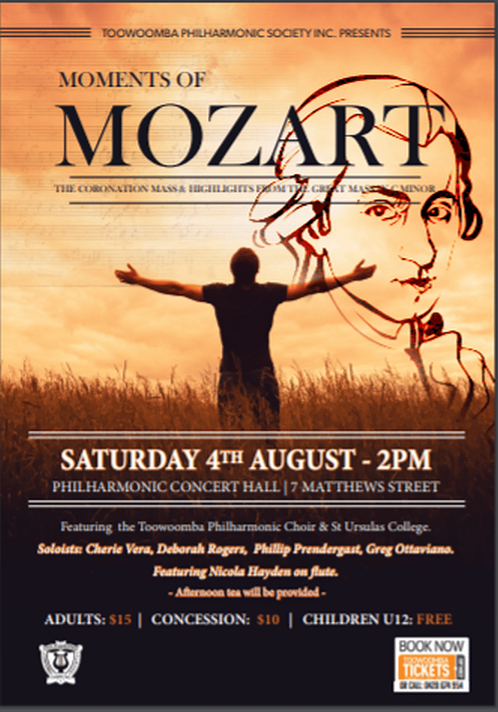 Toowoomba Philharmonic Society in conjunction with St Ursula’s College is hosting and performing a Moments of Mozart Concert on Saturday, 4th August at 2pm.