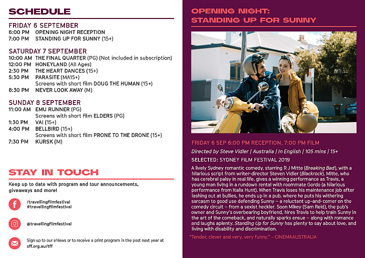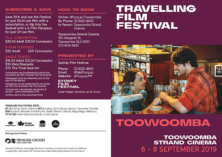 The Travelling Film Festival is heading to Queensland, next stop Toowoomba from 6 to 8th September, where the best of Sydney Film Festival will screen at BCC Toowoomba Strand Cinemas. Don’t forget to join us for the opening night reception and film STANDING UP FOR SUNNY.