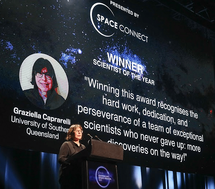 This month, representing the University of Southern Queensland, Dr Caprarelli was named ‘Scientist of the Year’ at the 2021 Australian Space Awards.