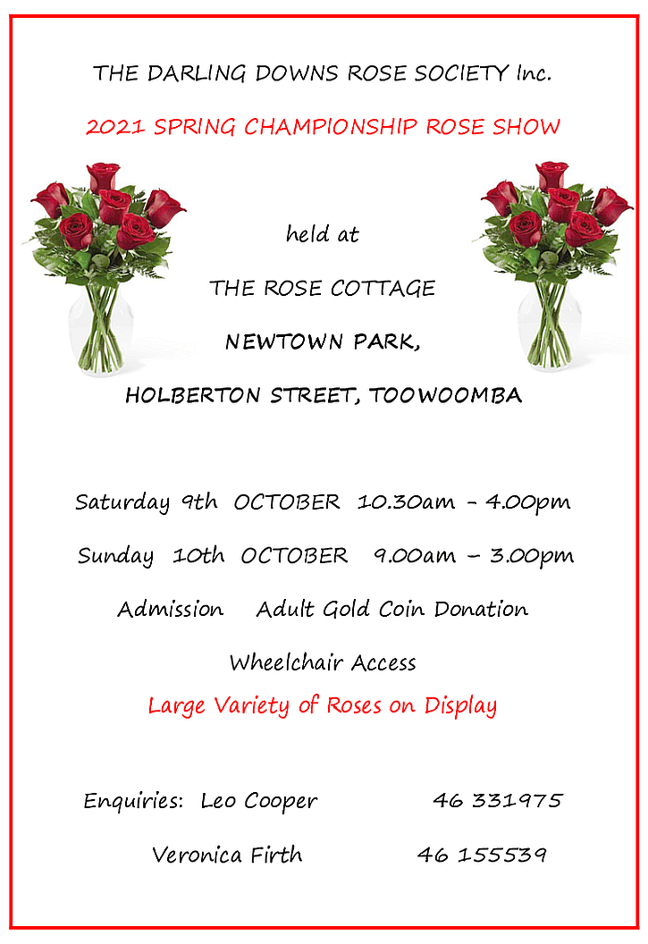 The Darling Downs Rose Society Inc is a Not for Profit Community organisation based in Toowoomba and is are celebrating its 30th year of operation in 2021.
