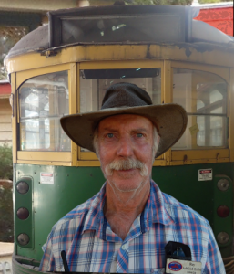 Highfields Pioneer Village Manager Ray Ashford with Melbourne tram